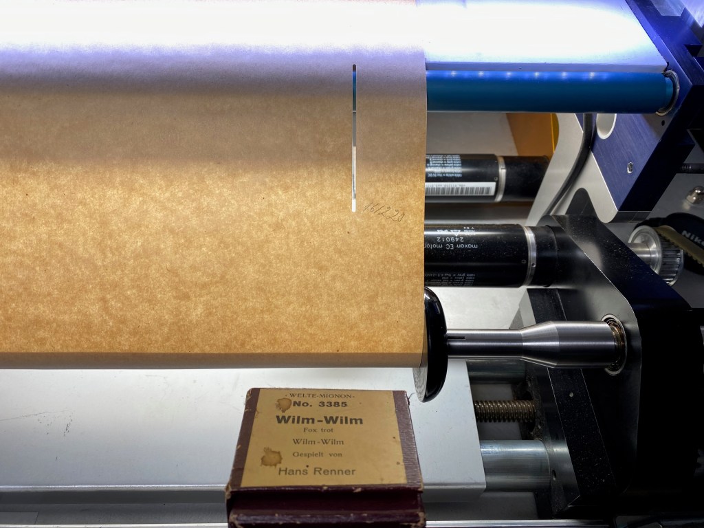 Vorgeschlagene Zitierweise: Notenrollen für selbstspielende Klaviere / Scans und Audioemulationen des DFG-Projekts Synkopierung und Volumen, erstellt von Marc Widuch in Zusammenarbeit mit Sebastian Bausch und Peter Phillips, bearbeitet von Jens Gerrit Papenburg, Steffen Just und Carla Christine Jürgens, https://sonic-modernity.net/2023/02/03/rolle-3385/, Version vom 10.02.2023.