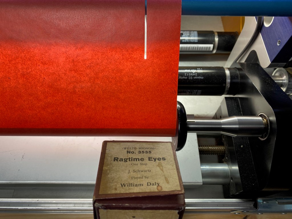 Vorgeschlagene Zitierweise: Notenrollen für selbstspielende Klaviere / Scans und Audioemulationen des DFG-Projekts Synkopierung und Volumen, erstellt von Marc Widuch in Zusammenarbeit mit Sebastian Bausch und Peter Phillips, bearbeitet von Jens Gerrit Papenburg, Steffen Just und Carla Christine Jürgens, https://sonic-modernity.net/2023/02/03/rolle-3535/, Version vom 10.02.2023.