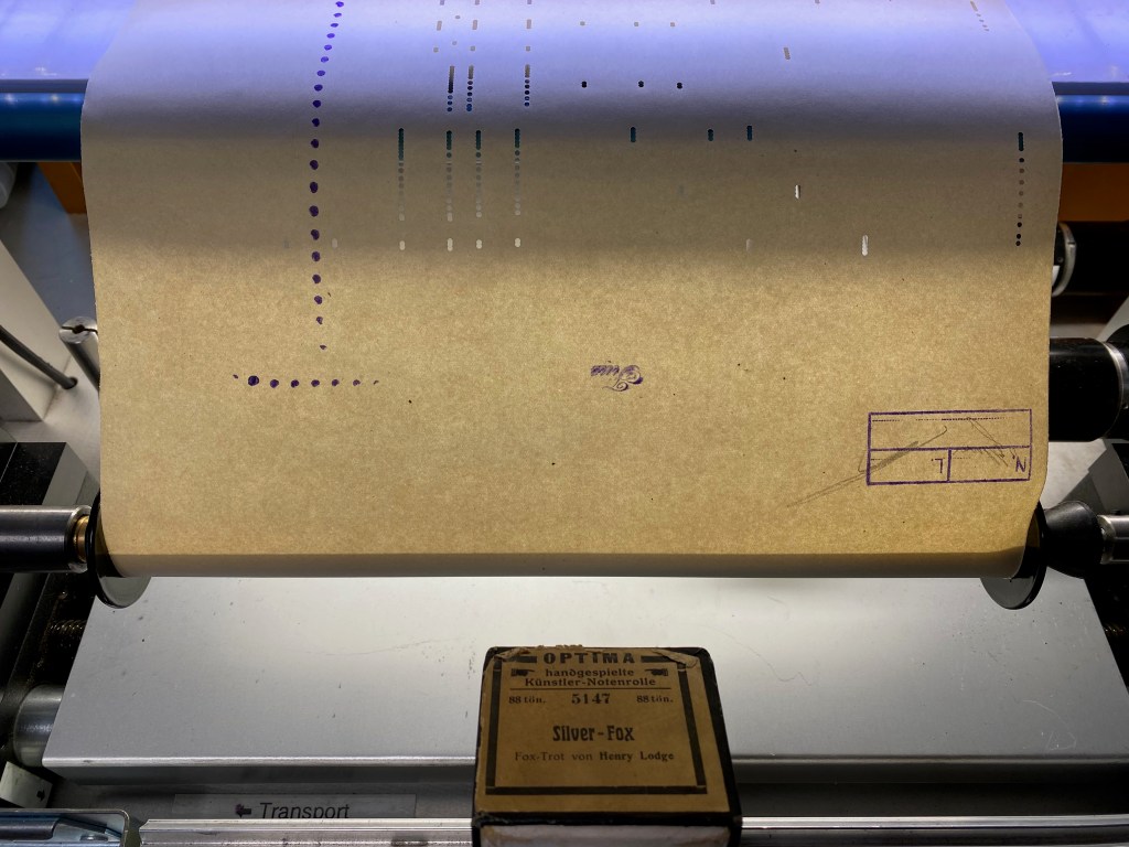 Die Bezeichnung „Künstler-Notenrolle“ verweist darauf, dass diese Rolle an einem Aufzeichnungsklavier von einer/einem Pianisin*en eingespielt (dann aber nachträglich am Editiertisch bearbeitet) wurde.