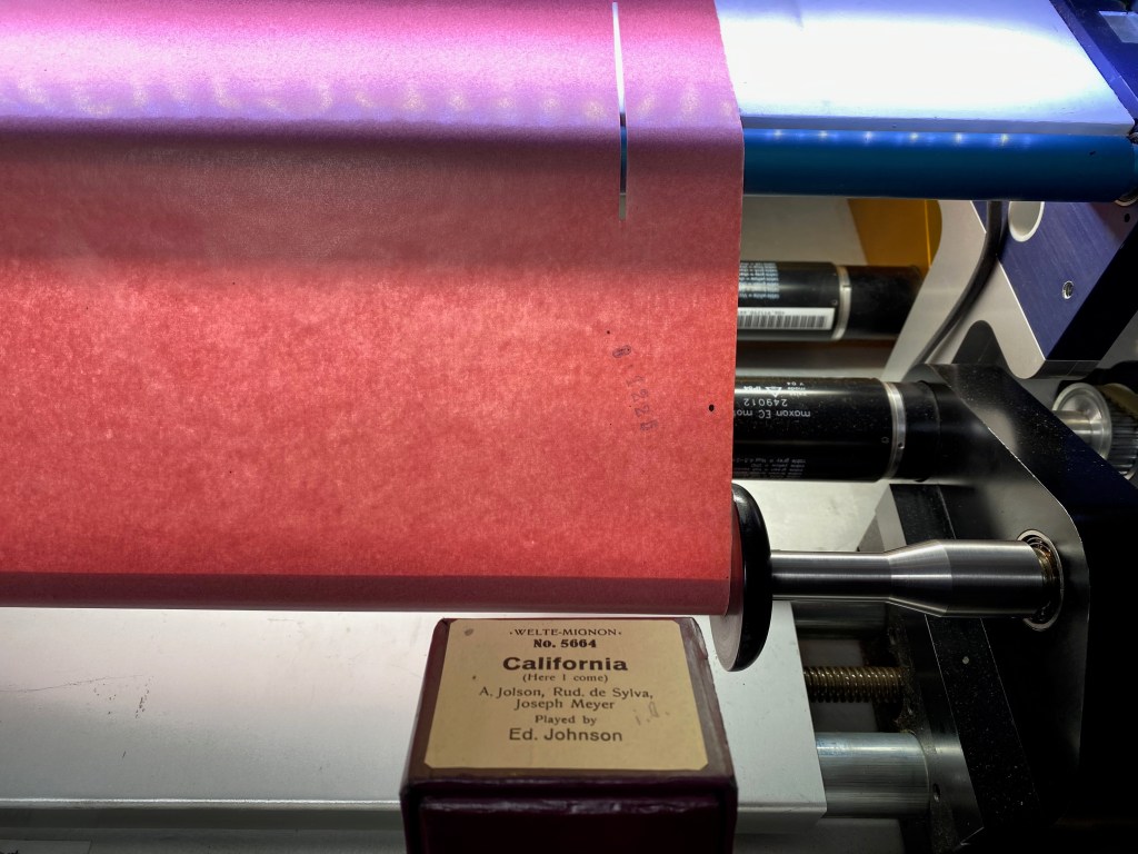 Faszination Pianola: https://www.faszinationpianola.de/wie-sieht-eine-welte-t100-rot-notenrolle-aus/