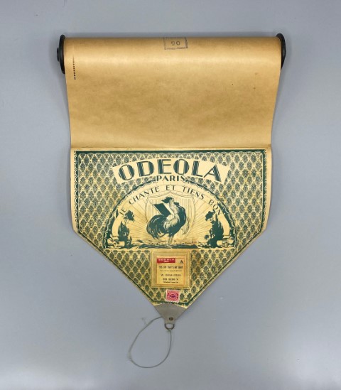 Odeola war ein französischer Klavierhersteller, der von Paris aus operierte. Ab 1919 finden sich Anzeigen für Player Pianos dieses Herstellers. Die Rollen scheinen für oder von diesem Hersteller selbst angefertigt und vertrieben worden zu sein. Der Tonumfang beträgt 88 Töne (A2 bis c5). Zu Beginn findet sich eine Tempoangabe. Seitlich befinden sich Perforationen zur Steuerung der Dynamik. Über den Verlauf der Rolle ist eine gepunktete Dynamiklinie zur Orientierung für die/den Spieler*in eingezeichnet. Die Rolle kann mit den Hebeln und Fußpedalen des Player Pianos entsprechend diesen Vorgaben oder auch nach freiem Ermessen gestaltet werden.