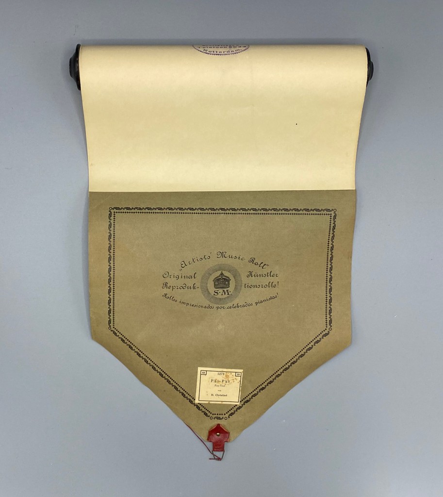 Diese Rolle der Leipziger Firma S.M. (Meißner und Schiller), hier versehen mit dem Stempel des Berliner Klavierherstellers Alois Müllner, umfasst eine Skala von 88 Tönen (A2 bis c5). Am Beginn findet sich eine aufgedruckte Tempoangabe. An den Seiten finden sich Lochungen zur Hervorhebung der Melodietöne (Solodant). Diese Lochungen heben die Melodietöne stärker hervor, da sie eine momentane Verstärkung des pneumatischen Drucks bewirken. Da diese Verstärkung alle auf einer horizontalen Linie liegenden Löcher (und entsprechende Klaviertasten) ansteuern würde, wurde beim Editierprozess darauf geachtet, dass diese Lochungen stets (zeitlich) leicht versetzt zu den übrigen lagen, so dass einzig die Melodietöne dynamisch hervorgehoben wurden. An den Seiten befinden sich weiterhin Perforationen für die Ansteuerung der Pedale. Diese Rollenart hat eine eingezeichnete Dynamiklinie über den Verlauf der ganzen Rolle. Diese Rolle kann durch die Spieler*innen am Pianola durch Hebel und Fußpedale in puncto Dynamik und Tempo entweder den Vorgaben entsprechend oder nach Belieben frei gestaltet werden.