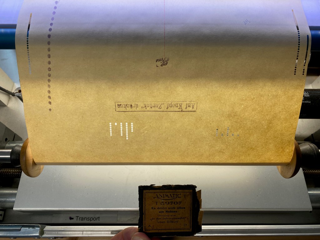 Vorgeschlagene Zitierweise: Notenrollen für selbstspielende Klaviere / Scans und Audioemulationen des DFG-Projekts Synkopierung und Volumen, erstellt von Marc Widuch in Zusammenarbeit mit Sebastian Bausch und Peter Phillips, bearbeitet von Jens Gerrit Papenburg, Steffen Just und Carla Christine Jürgens, https://sonic-modernity.net/2023/02/03/rolle-t59707/, Version vom 10.02.2023.