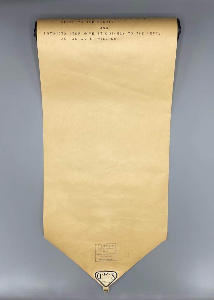 Die hier vorliegende Rolle ist eine Übungsrolle für das Gulbransen Player Piano-System zum Erlernen des Umgangs mit den Hebeln und Pedalen des Player Pianos.