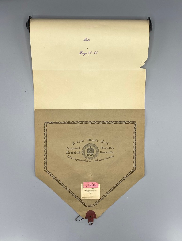 Diese Rolle der Leipziger Firma S.M. (Meißner und Schiller), hier versehen mit dem Stempel des Berliner Klavierherstellers Alois Müllner, umfasst eine Skala von 88 Tönen (A2 bis c5). Am Beginn findet sich eine aufgedruckte Tempoangabe. An den Seiten finden sich Lochungen zur Hervorhebung der Melodietöne (Solodant). Diese Lochungen heben die Melodietöne stärker hervor, da sie eine momentane Verstärkung des pneumatischen Drucks bewirken. Da diese Verstärkung alle auf einer horizontalen Linie liegenden Löcher (und entsprechende Klaviertasten) ansteuern würde, wurde beim Editierprozess darauf geachtet, dass diese Lochungen stets (zeitlich) leicht versetzt zu den übrigen lagen, so dass einzig die Melodietöne dynamisch hervorgehoben wurden. An den Seiten befinden sich weiterhin Perforationen für die Ansteuerung der Pedale. Diese Rollenart hat eine eingezeichnete Dynamiklinie über den Verlauf der ganzen Rolle. Diese Rolle kann durch die Spieler*innen am Pianola durch Hebel und Fußpedale in puncto Dynamik und Tempo entweder den Vorgaben entsprechend oder nach Belieben frei gestaltet werden.