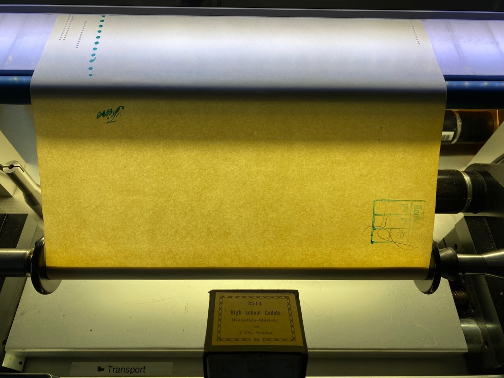 Vorgeschlagene Zitierweise: Notenrollen für selbstspielende Klaviere / Scans und Audioemulationen des DFG-Projekts Synkopierung und Volumen, erstellt von Marc Widuch in Zusammenarbeit mit Sebastian Bausch und Peter Phillips, bearbeitet von Jens Gerrit Papenburg, Steffen Just und Carla Christine Jürgens, https://sonic-modernity.net/2023/04/11/rolle-2514/, Version vom 10.02.2023.