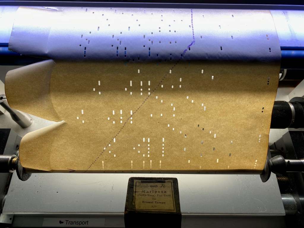 Vorgeschlagene Zitierweise: Notenrollen für selbstspielende Klaviere / Scans und Audioemulationen des DFG-Projekts Synkopierung und Volumen, erstellt von Marc Widuch in Zusammenarbeit mit Sebastian Bausch und Peter Phillips, bearbeitet von Jens Gerrit Papenburg, Steffen Just und Carla Christine Jürgens, https://sonic-modernity.net/2023/04/11/rolle-4445/, Version vom 10.02.2023.