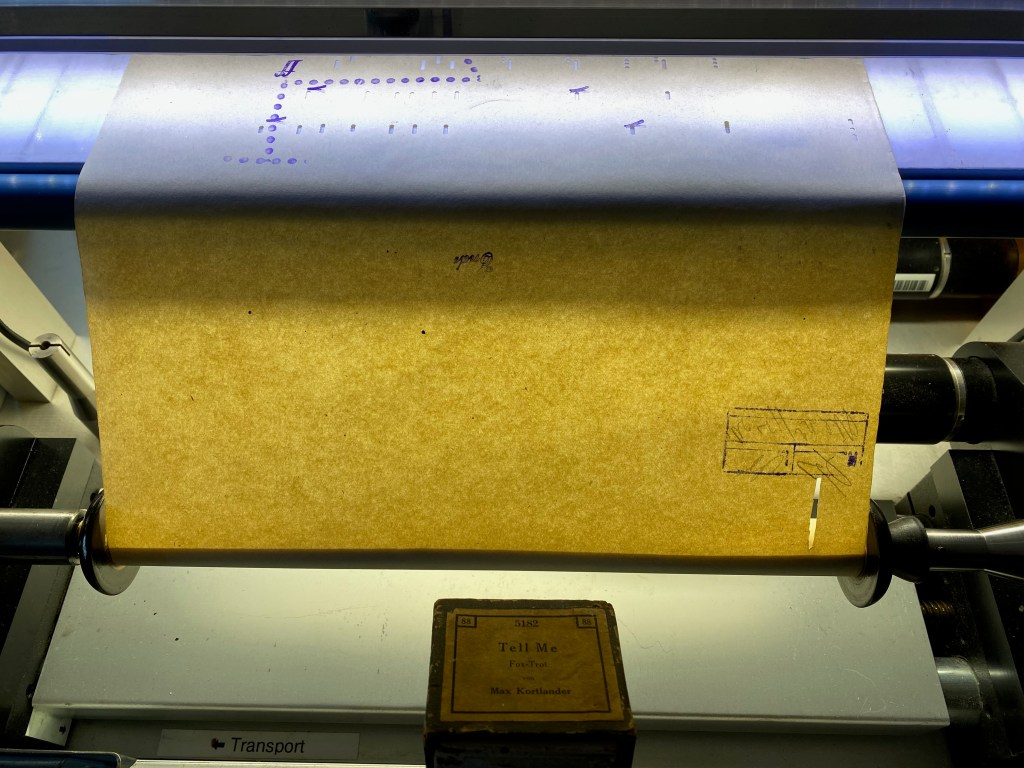 Vorgeschlagene Zitierweise: Notenrollen für selbstspielende Klaviere / Scans und Audioemulationen des DFG-Projekts Synkopierung und Volumen, erstellt von Marc Widuch in Zusammenarbeit mit Sebastian Bausch und Peter Phillips, bearbeitet von Jens Gerrit Papenburg, Steffen Just und Carla Christine Jürgens, https://sonic-modernity.net/2023/04/11/rolle-5182/, Version vom 10.02.2023.