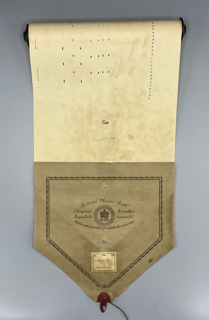 Diese Rolle der Leipziger Firma S.M. (Meißner und Schiller), hier versehen mit dem Stempel des Berliner Klavierherstellers Alois Müllner, umfasst eine Skala von 88 Tönen (A2 bis c5). Am Beginn findet sich eine aufgedruckte Tempoangabe. An den Seiten finden sich Lochungen zur Hervorhebung der Melodietöne (Solodant). Diese Lochungen heben die Melodietöne stärker hervor, da sie eine momentane Verstärkung des pneumatischen Drucks bewirken. Da diese Verstärkung alle auf einer horizontalen Linie liegenden Löcher (und entsprechende Klaviertasten) ansteuern würde, wurde beim Editierprozess darauf geachtet, dass diese Lochungen stets (zeitlich) leicht versetzt zu den übrigen lagen, so dass einzig die Melodietöne dynamisch hervorgehoben wurden. An den Seiten befinden sich weiterhin Perforationen für die Ansteuerung der Pedale. Diese Rollenart hat eine eingezeichnete Dynamiklinie über den Verlauf der ganzen Rolle. Diese Rolle kann durch die Spieler*innen am Pianola durch Hebel und Fußpedale in puncto Dynamik und Tempo entweder den Vorgaben entsprechend oder nach Belieben frei gestaltet werden.