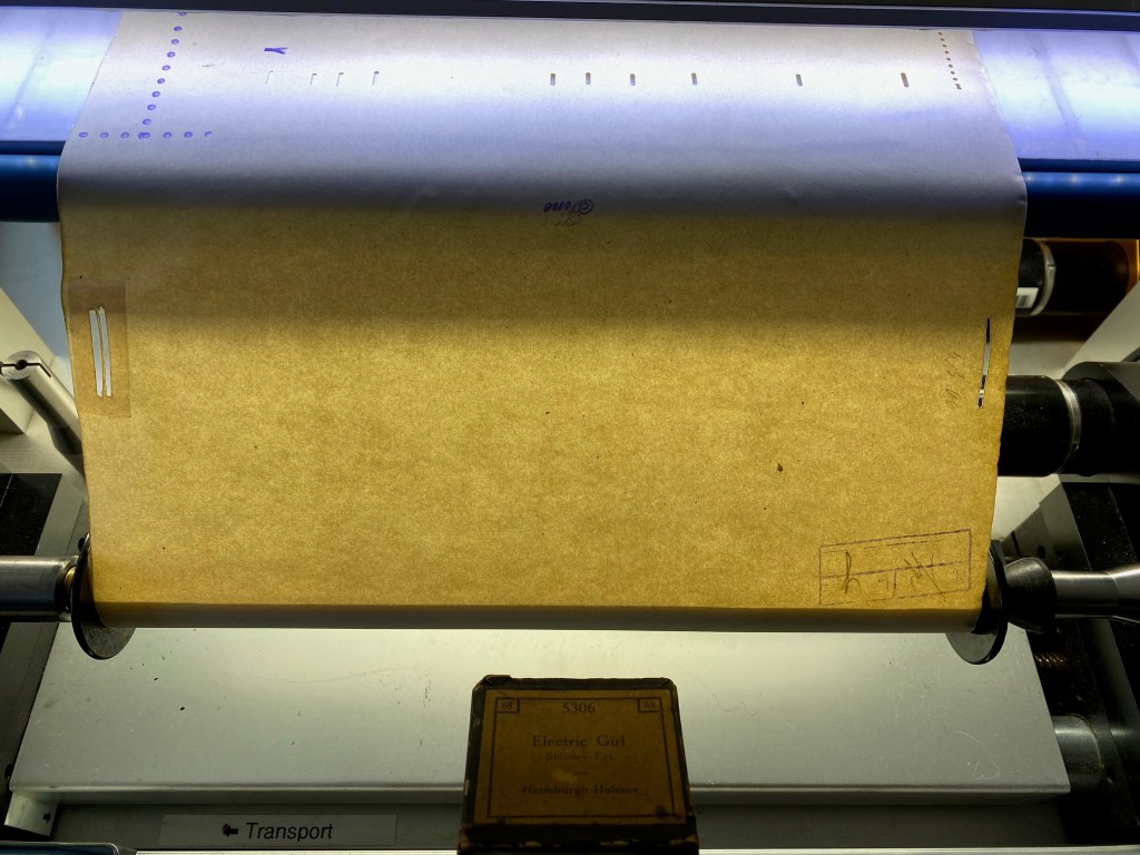 Vorgeschlagene Zitierweise: Notenrollen für selbstspielende Klaviere / Scans und Audioemulationen des DFG-Projekts Synkopierung und Volumen, erstellt von Marc Widuch in Zusammenarbeit mit Sebastian Bausch und Peter Phillips, bearbeitet von Jens Gerrit Papenburg, Steffen Just und Carla Christine Jürgens, https://sonic-modernity.net/2023/04/11/rolle-5306/, Version vom 10.02.2023.