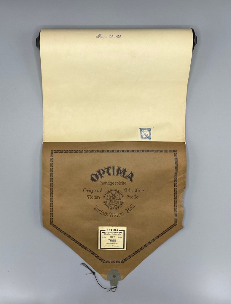 Die Bezeichnungen „Handgespielte Künstler-Notenrolle“ bzw. „Original Künstler-Notenrolle“ verweisen darauf, dass diese Rolle an einem Aufzeichnungsklavier von einer/einem Pianisin*en eingespielt (dann aber nachträglich am Editiertisch bearbeitet) wurde.